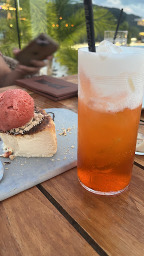 Good music, mostly European people count on prices this place - drinks 250thb, main dishes 700-1000 and more like 3000thb one course Food tastes main fish and meat, main courses and appetisers can’t complain, tasty and good, but size of dishes mostly small like in very expensive restaurants big plate and very small size of portion Drinks alcohol or non alcohol good. For non alcohol for 250thb I was expected more big size of glass for sure