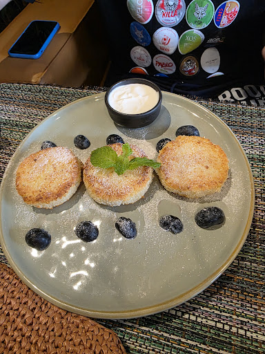 Read moreКафе с русскими блюдами. Так же тут можно приобрести полуфабрикаты (вареники, сырники, пельмени, блинчики) и соленья👍 атмосфера под винный бутик, но я ходила на завтрак😁 меню с большим выбором завтраков. Порции небольшие, поэтому и цена чуть ниже, чем в других похожих местах. Картофельные вафли с лососем неплохие, не хватило зелени и овощей к ним. Латте тоже был неплохой) а вот с десертами беда. Из всего меню, в котором их около десятка, в наличии оказалась всего пара. И тирамису не впечатлил...