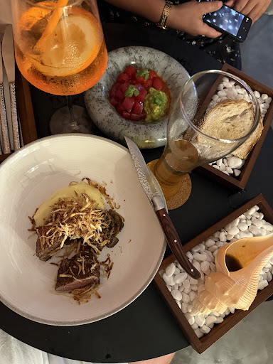 Read moreЗаведение с виду интересное , но мы шли на кальян и решили перекусить. Еда вкусный тар тар из тунца , стейк прожарки медиум у них не получился и сделали велдан , было вкусно но не то что хотелось , десерт панакота - это обычное молочное желе в виде кролика который сидит в луже из соуса манго , зрелище не очень ))) жена начала прикалываться кролик потёк))) ну ладно еда понятно - было неплохо. Кальян везде пишут 1000 , счет 1400 вопрос почему ??? Не успели везде поменять …. Такое себе … кальян потерял вкус через минут 30 , на вопрос кальянщику почему так быстро умер … ответ:- ну да на этой чаше он быстро сгорает !!! Ау ребята !!! Выбор табака по 5 вкусов русских табаков , выбора нет , ладно … по помещению :- на третьем этаже комната совсем маленькая , все сидят очень близко , некоторые на одном диване , балкон есть маленький на 2 стола , но если там уже кто то есть за одним столом , за вторым будет не комфортно , очень близко и какой то атмосферы и комфорта нет от слова совсем ! Много отзывов что есть крыша со столиками - развод !!! Типа на реконструкции , на вопрос в отзывах так восхищаются люди , в ответ нет нет там реконструкция … ненавязчиво предлагают травку покурить , но таких там был только один стол , остальные русские кто любит кальян . Нет оплаты картой !!! Русская девушка не знаю менеджер или хозяйка рассказала что хотят звезды Мишелен для ресторана , научитесь хотя бы прожарку сделать правильную … спускаясь вниз с 3 этажа , на первых двух людей 0 . Все идут только на кальян . Итог - еда ок , кальян - полная фигня , ни вкуса , ни выбора и сгорел через 25-30 мин . Чек : панакота , тар тар из тунца , стейк , бутылка пива , бокал апероля и кальян : 10600 рублей рф . Моя рекомендация : кальян...