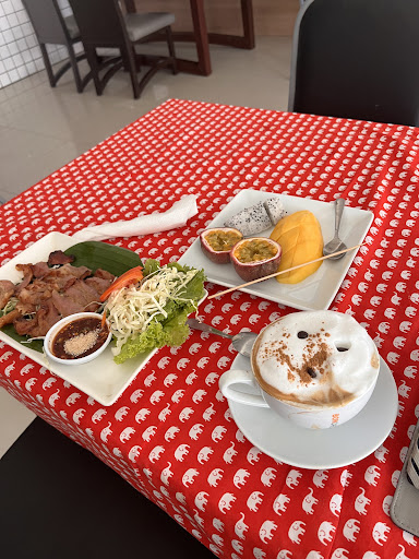 Read moreI noticed this place in the afternoon on the taxi ride to Central Festival. I wanted to try it out. First impression, greeted nicely by patron. Nice ocean breeze and some smooth jazz music. Intimate environment. Decor mostly consisted of different light fixtures. Patron took my to-go order then brought me some slices of watermelon and a beverage of what seemed to be mango (very refreshing!). The menu items were a lot different from all the places where Chanalai Garden Resort was. I liked that. Food smells amazing as they were cooking it and it appears they offer Thai cooking classes here. Place is empty but I gather its because everyone is at the beach. I ordered Pad Thai (pork, extra spicy), Garlic Peppered Pork, Beef Larb (spicy), Mango w/...