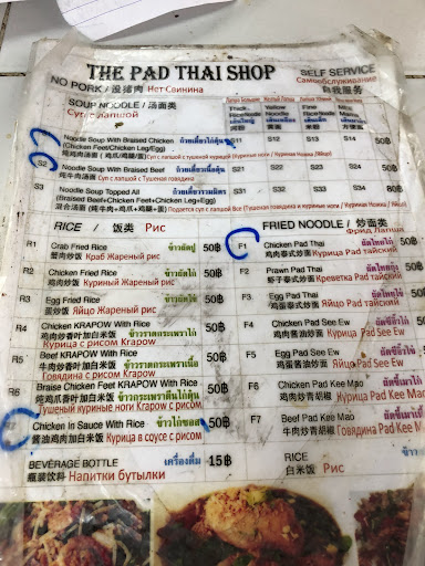 Anyways, you order first. I recommend getting any of the Pad Thai (a whopping 50 baht). It’s different from the others- I think they use the vermicelli noodle. Idk-I’ve attached a pic because it’s not the usually fatter noodles. With the pad Thai, they give you a side plate of bean sprouts and lime.