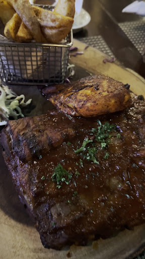 The hostess who took our reservation and shows us to our table is very friendly, but our waitress is very unprofessional. I ask her to clarify the Friday AYCE ribs and chicken, she shoves the menu back at me and says You read the menu. I reply the menu only show a pic of a plate of ribs and chicken and no written description, this went on for a few minutes and I gave up. The chicken breast is dry like a towel and tasteless. The ribs is very delicious, the meat slides off the bone tender, the garlic coated thick cut of fries is yummy. The first order comes with a chicken breast and 5 ribs. Beware there is a charge for a small bowl of extra BBQ sauce, but no charge for unlimited small cup of BBQ sauce 🤦🏻♂️ Advise to specific how many ribs when ordering additional ribs or they’ll serve you 2 ribs at a times. It is hard to get the staff attention for additional order of ribs. They won’t check back with us at all. It feels like they avoid us because we chose AYCE. In 90 minutes, we were only able to eat 1 additional orders of ribs. We decide to leave after failing to put in another order of ribs. The check came quickly 🤣. AYCE offer shouldn’t be...