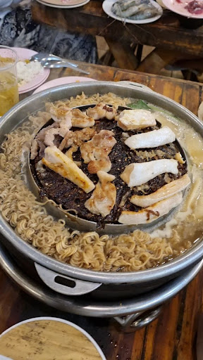food: food variety is quite limited compared to other mookata buffets at similar price. fried items (fries, popcorn chicken, nugget) were all soggy 🍟 dessert was some local mix (not my kinda thing so i didn’t try) but they had some chocolate cake as well! (it was yummy) 🍰
