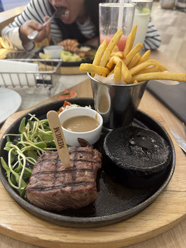 อาหารรอนานมาก ได้ช้ามาก เราตักสลัดบาร์กินไปรอบนึงแล้ว จนจะอิ่มแล้ว อาหารก็ยังไม่มา จนโต๊ะถัดๆไปจากเรา เราจำได้ว่าเขามารอคิวมีหลังเร่ และเข้าร้านหลังเรา แต่เขากลับได้อาหารก่อน เราจึงเรียกพนักงาน ตอนแรกกดปุมเรียก ก็ไม่มีใครมา เลยลองตะโกนเรียกดู เพราะเรานั่งอยู่ข้างๆครัว เรียกนานมากกว่าจะได้ยิน เราก็ถามหาออเดอร์เรา แปปนึงก็มีพนักงานทอมเอามาเสิร์ฟ แต่ในจานมีมันอบ เราก็บอกว่าอันนี้แจ้งตอนสั่งว่าเปลี่ยนเป็นเฟรนช์ฟรายนะ เขาก็เอากลับไปเปลี่ยน อีกแปปก็มีพนักงานอีกคนเอามาเสิร์ฟสองจาน ของเรากับแฟน เราก็งงว่าจานไม่เหมือนอันแรกที่เขาเอามา คือยังไง เขาเสิร์ฟผิดหรือเปล่า งงไปหมด พนักงานก็งง สุดท้ายเราเสียอารมณ์มาก เลยให้ห่อกลับ ไม่กินแล้วสลัดบาร์ อารมณ์บูดหมดแล้ว