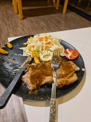 We looked for this restaurant which was near our hotel and as the pictures looked like the food was of a good standard! However we ordered 4 dishes including sirloin with fries and sald and chicken with cashew nut. When the food arrived it did not look like the pictures. The chicken was well overcooked and the sauce was just like tomato ketchup lots of onions and looked awful. We ordered the steak medium and it came covered with a gravy sauce it was very very tough and so could not be eaten the ! Very disappointed!!! The place needed a good clean and still had Xmas decorations up only 7 days of April!! We asked for the bill and the waitress came over to collect payment she must have seen the dishes left but never once asked if there was a problem with the food! This for me is very bad service I would of been happy to suggest improvements buy it...