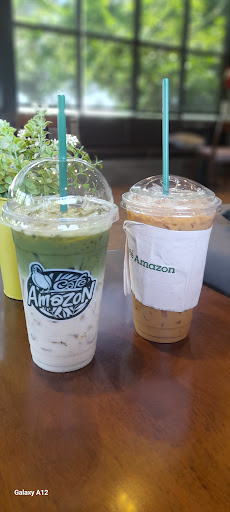 อเมซอนสาขานี้ ตั้งอยู่ในปั้มปตท เส้นทางคลอง 7 - วังน้อย บรรยากาศของร้าน ดีเลิศประเสริฐศรีมาก การตกแต่งทั้งภายใน และ ภายนอก ทำได้ดีมากเลย ภายในกว้างขวาง จัดที่นั่งได้ไม่แออัด มีของตกแต่ง กระจุกกระจิก วางตามมุมต่างไป แอร์เย็นฉ่ำ มีเปิดเพลงคลอเบาๆ ฟังสบายๆ ลูกค้าไม่เยอะมาก มีมาเรื่อยๆ สงบเงียบดี ส่วนด้านนอก มีมุมให้นั่งมากมาย มีมุมถ่ายรูปก็เยอะ ด้านหลังมีนาสีเขียวๆดูแล้วสดชื่นดีจริงๆ ถ้าเป็นช่วงเช้าๆ หรือ ยามเย็น นั่งจิบเครื่องดื่ม พร้อมชมบรรยากาศยามพระอาทิตย์ตก คงฟินน่าดูเลย พนักงานบริการดีมาก แทบจะไม่ได้ยินเสียงคุยกันเลย เครื่องดื่มรสชาติดี เข้มข้น อร่อย สรุป เป็นสาขาที่ตกแต่งได้สวยที่สุด...
