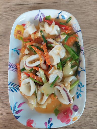 ไปมาวันนี้ครับ มื้อเที่ยง ไปถึง ที่จอดรถเต็มแล้ววววว ต้องวนไปจอดที่เสียเงิน 20 บาท (ยอมเสียนะครับง่ายดีมีคนเฝ้าด้วย) จอดรถแล้วเดินไปที่ร้านประมาณ 200 เมตร ข้ามสะพาน(ตอนข้ามสะพานจะมี 2 เสตป พื้นสะพานจะไม่เหมือนกัน ระวังจะหัวทิ่มเสตป2 นะครับ มันเป็นอะไรที่ถ้าไม่ระวัง จะสะดุดได้ง่ายๆ) ถึงร้าน ก็จะเห็นคนเต็มร้านแล้ว มีประมาณ 20 โต๊ะ(ถ้าคณะไหนคนมาเยอะๆ โต๊ะก็จะยุบไปรวมต่อโต๊ะ) มีคนรออยู่ก่อนแล้วอีกประมาณ 7-8 คิว ก็ไปขอบัตรคิว ตอนที่ไป ได้คิวที่ 7 ตอนนั้น เพิ่งเรียกคิวที่ 16 นั่นก็คือกว่าจะมาถึงเราก็ 11 คิว รับบัตรคิวมาก็ไปที่มุมจดอาหาร จะมีเมนู กระดาษ ปากกาพร้อม อยากทานอะไร ก็จดลงกระดาษ ต้องจดเบอร์คิวด้วยนะ อาหารมี ประมาณ 40-45 อย่าง 2 หน้ากระดาษ มีบอกราคาพร้อมเลย จนเสร็จก็ถือเอาไว้นั่นแหละ เค้าเรียกเมื่อไหร จึงจะส่งรายการอาหาร ช่วงยืนรอจะมีมุมนั่งหน้าร้าน จะได้กลิ่นน้ำที่อยู่ใต้พื้นร้าน กลิ่นจะตุๆสักนิด แล้วก็จะผสมกลิ่นน้ำหอม ของคณะที่มานั่งรอยืนรอ ตลบอบอวลไปหมด นั่งรอนานประมาณ 1 ชม. จนจมูกได้กลิ่นตุๆหมดเลย ไม่มีน้ำหอมละ มันผสมกันจน มึน ... ได้มานั่ง ก็รออาหารอีกประมาณ 15 นาที ทะยอยออกมาทีละจาน น้ำมาก่อน เราสั่งไป 5 อย่าง กุ้งทอดซอสมะขาม 120 บาท มาก่อนเลย มีกุ้งตัวใหญ่ 4 ตัว อันนี้คือดีย์มาก กุ้งทอดมาใหม่ๆ กรอบๆเลย ราดซอสมะขามไม่หวานไม่เปรี้ยวโดด โรยหอมเจียวกับพริกแห้งมาด้วย ถือว่าจานนี้ดีที่สุดที่สั่งมา ให้เต็ม 5 คะแนนเลย หมึกผัดไข่เค็ม 120 บาท มาที่สอง มีหมึกมาปริมาณถือว่าเยอะเลย หมึกไข่ด้วยนะ รสชาติกลางๆ ไข่เค็มแลจะน้อยไปนิด รสชาติหมึกเด่นโดดๆเลย ให้ 4 คะแนน ต้มยำปลากระพง (ถ้วย) 150 บาท มาที่สาม ถ้วยนี้ก็ต้มยำรสแนวจัดจ้าน เครื่องต้มยำแน่นมาก แน่นจนมีปลากระพงมา 4 ชิ้น เห็ดฟาง 4 ชิ้น (นับสองรอบเลยนะ)แลจะราคาแรงไปนิด ถ้าเทียบกับปริมาณ ให้ 3.5คะแนน ทอดมันปลา (จำราคามิได้ละน่าจะ 120) อันดับ 4 ก็ทอดมันปลาที่ไม่ใช่เนื้อแบบเหนียวๆ อารมเนื้อทอดมันจะออกแดงๆด้วยสีของพริกแกง รสชาติทอดมันปกติ มา 6 ชิ้น น้ำจิ้มเครื่องเยอะให้มาล้นถ้วย น้ำจิ้มใส่ถั่วป่นมาด้วย ถือว่าเป็นน้ำจิ้มที่ชอบได้มาคลุกกับข้าวสวยร้อนๆ กินกับทอดมัน ถือว่าชอบละกัน หวานไม่มากนัก ให้ 4 คะแนน ยำผักบุ้งกรอบ 80 บาท จานที่ห้า จานนี้ถือว่าเด็ด ทั้งปริมาณ และส่วนผสม มีกุ้งมา 4 ตัว ปลาหมึกอีกเยอะพอสมควร รสชาติน้ำยำดีงาม ผักบุ้งทอดมากรอบๆ ตอนที่มาเสริฟยังร้อนอยู่เลย ให้ 5 คะแนนอีกจาน ข้าวเปล่า 2 จาน 20 บาท ค่าอาหาร 610 บาท ค่าเครื่องดื่ม 35 บาท มีเครื่องดื่มเป็น น้ำเปล่า 1 ขวด โค้กซีโร่เล