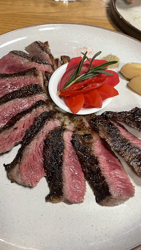 When we went, most of the menu was wagyu and we don't love wagyu steak. We really wanted non-wagyu, perhaps angus, dry aged, porterhouse or tomahawk. Nothing. Not a lot of choices on cuts, so we got the ribeye wagyu 500 grams - the amount of unrendered fat prob was 50-100 grams of the cut. It was seasoned so blandly for the cook, that added our own salt/pepper and then asked for an actual sauce. A good steak cooked well shouldn't need much sauce, just some salt, good sear, perfect temp. Didn't taste any of the funkiness that's unique to dry aged steaks either.