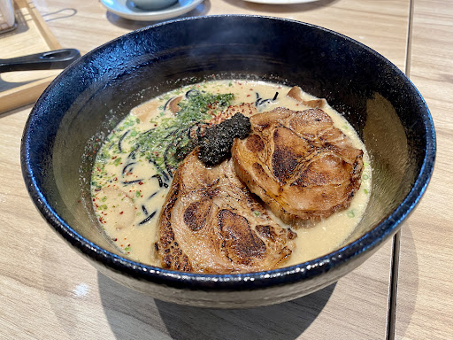Ramen broth was rich and strong (truffle). A bit too heavy for me. We chose Spaghettini black ink as the pasta and turned out to be over cooked due to the 1.2mm size. Should pair better with wider or thicker noodles.