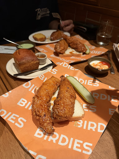 Read moreMy husband and I are from the southern United States, Alabama and Mississippi respectively. I come from a long line of great southern cooks and we know what southern food is supposed to taste like. Although I was excited when I saw Birdies menu…they had all of my favorites, still I was somewhat skeptical. We started with the Burrata and was blown away! Then followed with the (more traditional) spicy chicken tenders complete with Alabama white sauce (my husband’s favorite), their Mac and lots of cheese, cornbread and smoked duck collard greens. My taste buds were in heaven! It immediately made me reminisce of after Church Sunday dinners at my Grand Mother’s as a child and cooking a “fried chicken dinner” for my own kids. Everything was spot on. The Mac and cheese was so moist and so flavorful and yes cheesy. The twist on the collard greens was excellent. Any true southerner knows cornbread isn’t supposed to be sweet like cake but savory to complement the side dishes…the Chef absolutely nailed it! There was maple syrup and the most delicious maple butter that can cure your sweet tooth if desired. The atmosphere is hip and the staff most welcoming and friendly having elevated Southern food that would make my Mama proud! Thank you for a truly...