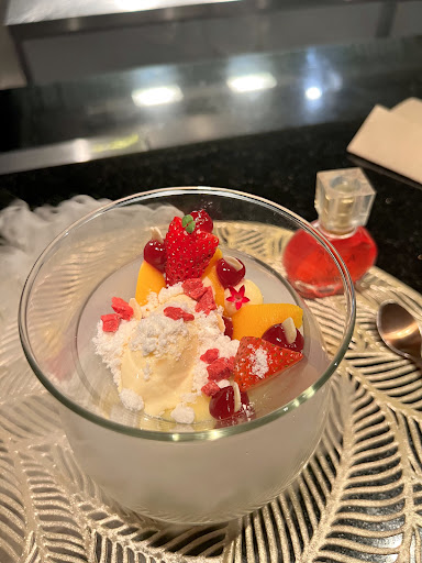 The dessert had been prepared since before the main course was prepared. Considering the delay between courses and the restaurantâs temperature, the textures of the panna cotta, fruits, sauce, and vanilla ice cream were either warm or melted. The presentation was impressive, but the perfume sauce lacked taste or aroma and couldnât support the...