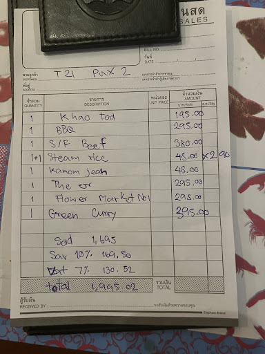 Read moreNegative -- sign outside 'waited to be seated' you gonna wait forever if you don't go inside and ask for a table. -- misleading menu (pickled mustard with cucumber is actually a micro plate with onions {I did not eat as I don't like onions and nothing said on the menu about it} and also the famous fried rice ball with fish {no fish inside just the taste of it}). -- No alcohol sold at the time we chose to go due to a Buddhist event going at the time. (No signs outside or when you are sat, just when they come to take the order, they is a small sign behind the bar which cannot be really seen). -- Portions smaller than the Thai average, and prices too high. --10% service charge without consulting customers (There is a big controversy in Europe about many business keeping it, I cannot imagine how fair is in Thailand, I would rather give it separately to the server)