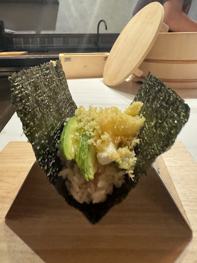 You’ve got these chefs lining up behind the bar, rolling up some magic. It’s not just sushi; it’s a flavor bomb wrapped in nori. Each handroll is a mini artwork—seriously, they stand up on the plate like they’re ready to walk. And man, they’ve got everything from buttery avocado to fresh-off-the-boat fish topped with crispy tempura flakes. It’s all about that crunch and creaminess together. 😋
