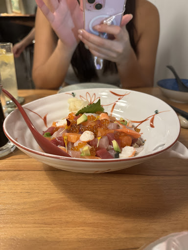 Sashimi Bowl: The sashimi bowl was an explosion of fresh flavors and vibrant colors. It featured an assortment of fresh fish, including salmon, tuna, and shrimp, all delicately sliced and arranged over a bed of rice. The dish was garnished with ikura (salmon roe), avocado, and a sprinkle of fresh herbs, creating a harmonious blend of textures and tastes. The quality of the fish was exceptional, and the presentation was impeccable, making it a visual and culinary delight.