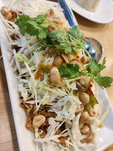 This quaint little restaurant offers a delightful homey dining experience. The menu features a variety of many dishes especially classic Thai dishes, many of which are hard to find elsewhere. The satay was tender and flavorful, the green curry was rich and aromatic, and the golden cups were a nostalgic treat. The crispy pork ribs were cooked to perfection, and the lodchong offered a satisfyingly chewy texture. While the pladukfoo was a bit little compared with cabbage on the top,the stir fried cabbage is way too oily, the accompanying pomelo Yum was a delightful surprise. The restaurant's commitment to preserving traditional Thai flavors is evident in every dish. The service is ok, the seat is not comfortable but there is enough space to join and...