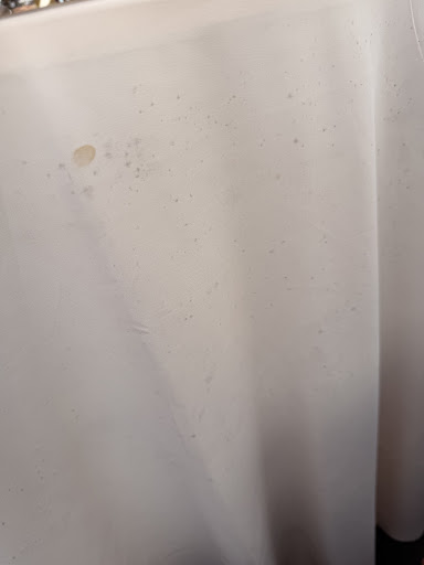 The “glass” dome room we were sat inside consisted of old plexiglass that had years of aging which caused the plexiglass to become foggy and not clear anymore. Also many rust spots visible which also gave indication of lack of ongoing maintenance. The fake roses inside were obviously years old and our chandelier had different types of light bulbs which added to the feeling of being inside an old structure. Some of the light bulbs were even blown out. We then noticed a significant amount of stains on the tablecloth where your knees and legs would brush against while sitting, showing that the cloth hadn’t been washed for quite some time, as there is a wrinkly piece of plastic which sits on top of the tablecloth so it doesn’t need to be changed as often. Lacol, please invest in some maintenance of your restaurant as it must have been nice at one time but appears that you’ve given up on the place. There’s also stains all over the upholstery that you sit on. Pretty gross.