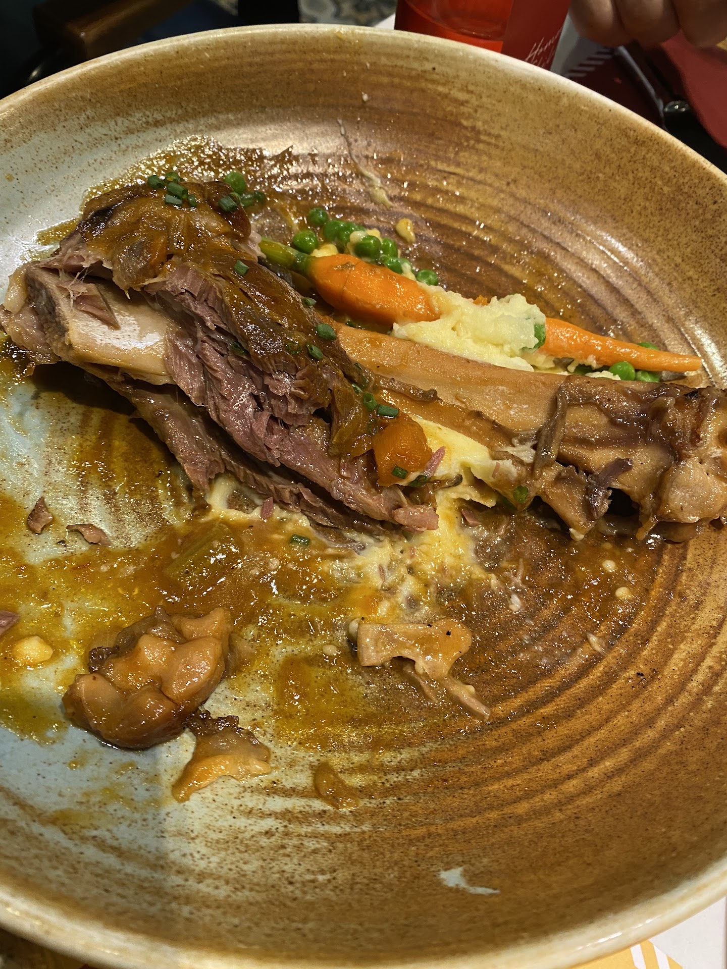 The meal started with bread that was unfortunately dry and hard. We ordered the Lamb Shank and Truffle Pizza, both of which tasted good. However, our enjoyment was marred by serious hygiene issues. I found a hair in the lamb, and shortly after, my boyfriend found another hair in the pizza. We initially tried to overlook it to avoid making a scene, but it was a significant disappointment.
