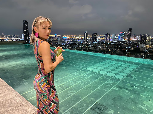 After our last yearâs disappointing experience at Seen Restaurant (see my review from Feb 2021) I looked around for less known rooftop restaurants in Bangkok and came across Nimitr. We were staying close by, so I thought Iâd give it a go for our date night. It wasnât easy to find as not many people in the area seem to know of the place. But we finally found the hotel that itâs a part of (137 Pillars) and was shown up to the 27th floor. First impressions were great. The restaurant was beautifully done in a dark modern design that didnât feel oppressive because of its very high ceiling and large windows looking out over the city. It was a comfortable evening so we chose to eat outdoors. There isnât a lot of seating, but there werenât a lot of people either. Maybe because we were there on a weeknight, but still not a good sign. We went with the 4 course set dinner, which seemed very reasonably priced for such a place. My expectations were diminishing, given the relatively low price and slow business. Once dinner was ordered, with cocktails in hand, we explored the small area. It really is a beautiful view, with the added bonus of a rooftop pool that allowed for great selfies. The cocktails were well poured (unlike the light cocktails we usually get in Thailand), so when entrees were served, we were both in good moods. The oysters tasted fresh, and my little fried up truffle cheese samosas were surprisingly tasty. Language barriers (come to Thailand enough and you take that in stride) caused us to get cocktails we didnât order, but we just took them anyway. The mains were on the small side, which explained the reasonable prices, but very tasty. And though they were small, after desserts, we were both quite full⌠probably because of those extra cocktails. The service was pleasant, you felt like they were trying to do things right. All in all, we feel like weâve discovered a hidden gem. Weâre planning to go back with some friends soon but will swear them to secrecy. Donât want this place getting so popular that they donât try hard anymore, like that place we went...