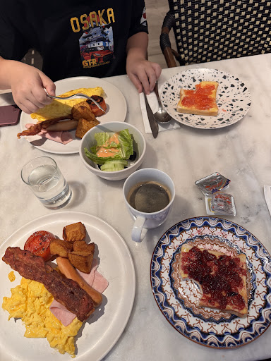 We really enjoyed the experience. The space was cozy and small, offering breakfast options from the menu as well as a salad bar. For two people, including my son, the breakfast cost us 399 Baht, which is very affordable for Bangkok.
