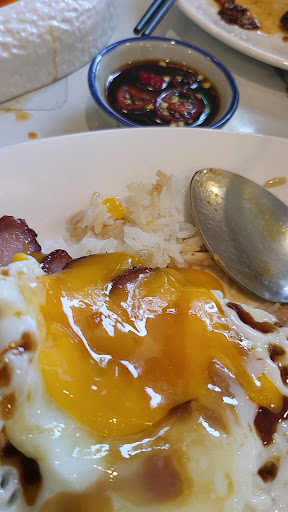 หมูแดงฮ่องกงที่นี่ ครัสกรอบ คาราเมลไลซ์ หมูมีความเฟิร์มฟันหน่อย หอมสโมคกี้ จะสั่งเป็นกับข้าวก็ได้ เป็นข้าวปลิดวิญญาณก็ดี มีซิกเนเจอร์เป็นยักษ์สามตา (ข้าวหมูแดง+ไข่ดาว 3 ฟอง) 200 เอาอยู่