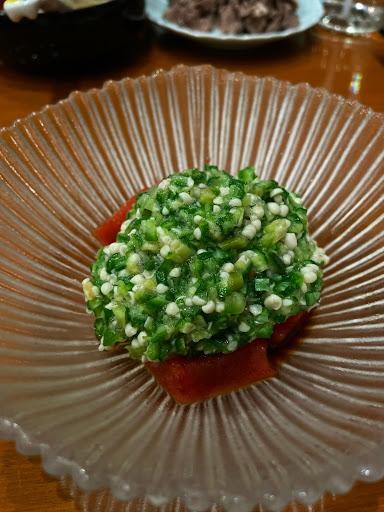 Begin your meal with the Okra with Akami Tuna Soy Sauce — a refreshing appetizer that combines the gentle crunch of okra with the rich, lean texture of tuna, elevated by a perfectly balanced soy dressing. Then move to the Hot Inaniwa Beef Udon, featuring silky, thin noodles in savory broth topped with tender premium beef — warm, comforting, and deeply satisfying.