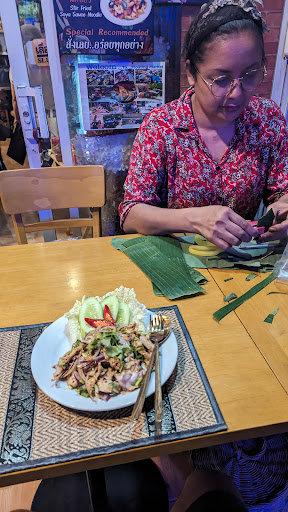 Ying is also fantastic cook and if they don't have what you want on the menu just ask, or turn up with some ingredients you want cooked, she is happy to oblige. All the dishes I tried were authentic, maybe a little more suited to western tastes than some of the street food stalls (e.g. not so spicy), but definitely well made and with lots of love. The other staff were also lovely and very attentive. Ying is also a master when it comes to amazing flower arrangements as you can see in the photo. Highly recommended, even if you just want a snack and a few beers late at night (open till two am) you will be welcomed. A great place to watch life...