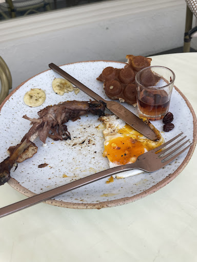 Read moreFeeling impress by beautiful interior design but nothing else. Waitress/staffs know the menu and can recommend very well and always be there for help. The place is clean and neatly design. I ordered 2 drinks that taste not really that impress but ok and duck and waffle (490 bath): portion is not along well with the price. The duck weighted by eyes was like 200 g and very dry and taste nothing just duck meat. The waffle is a bit dry too but ok. A sunny side up fried egg is just plain. The sauce is sweet. Eating this all together is okay a bit too sweet but can be better when the price is nearly 500 bath. Eat this make me feel a little thirsty and sad rico’s breakfast platter (360-). This plate should be tasty and complex and refreshing but I can feel literally nothing. Toast and egg make it a little dry (less than duck and waffle) banana is good. Overall it just ok. Can be eaten with normal feeling but not with high expectation. house made marinated pork chop (420 bath) this one was recommend by the waitress and it is the good one! Pork chop is perfectly cooked. Smell and taste good. Onion and garlic can be done better. Apple and Cinnamon taste ok. Overall together is too sweet. No other taste but the pork is good so it...