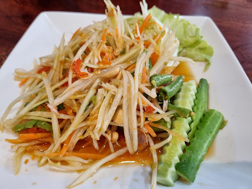 Only one visit here and for takeaway. I would probably try this place again for dine in but the takeaway was just so so. The padthai was cooked without any sauce really, just dry noodles. The morning glory lacked salt...as did the other vegetables. The penang curry was EXCELLENT. However, non of the food came with rice so i had to cook rice when i got home. Was disappointed that when i ordered, no one asked if i wanted rice and it was not included. The mango sticky rice was tasty, but as with most places only comes with a trivial amount of sticky rice. The packing was also off...its bagged (which i prefer) but then stuffed into a styrofoam box...and the boxes are rubberbanded shut...but the bands cut the boxes so they...