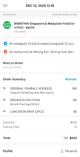 Read moreDo not order from them, its 3rd time I have ordered theor food via Grab app n order is cancelled then staff calls me to order direct from their website n claim order cancel by Grab driver whom I have tip 50baht (very unlikely) Bad business practises and inform to Grab to inbestigate their drivers too why only order from this restaurant has this issue when I order other nearby restaurant there is no issue of traffic jam. Asoke to Phrompong is just 1 BTS distance away and google map says 9mins! Will be reporting this to the press as shame for Singapore n Malaysia branding. I found out from my 3rd reorder driver its becoz they take more than 30mins to prepare orders and thus dont want to wait, well known amongst drivers they are slow in service but told him ok he can run other orders first. Please sort this out with Grab as not everyone wants to order from your website due Grab points. In fairness had a call fm Manager Som again to inform food ready but driver done other runs n some offer again if book via their website (again just stink that it seems they want undercut marketing reach of grab n redirect orders to...