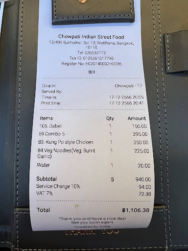 Read moreIf you're on a hunt for spicy, vibrant Indian flavors in Bangkok, Chowpati Indian Street Food might be a pit stop, but not necessarily a destination. My recent craving for Indian led me here, and while it satisfied the immediate need, it didn't quite set my taste buds on fire.