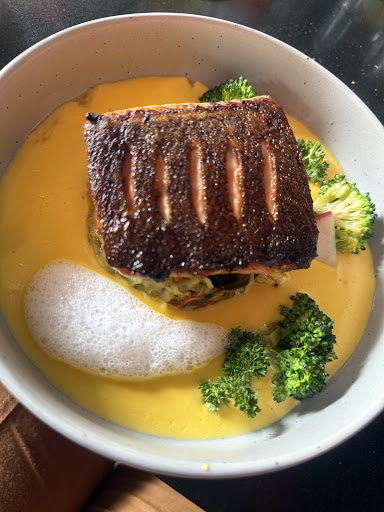 For our meal, we ordered the salmon and lamb, and both dishes exceeded our expectations. The flavors were absolutely exquisite, every bite bursting with depth and richness, a testament to the chef’s mastery. Each dish was cooked to perfection, striking a balance between taste and presentation that left us thoroughly impressed.