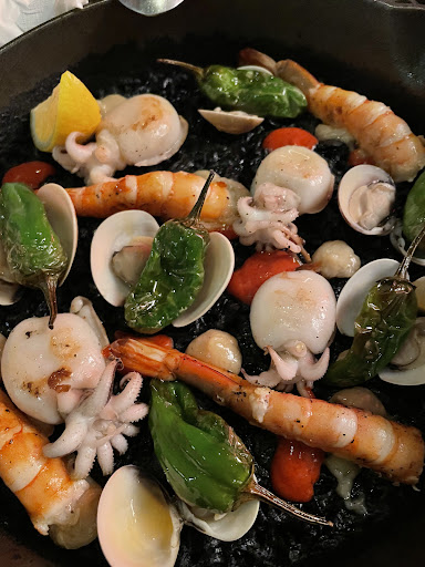 We ordered olives for starters, very appetizing with their complimentary sous vide garlic spread. Their bread was just right and their olive oil was on point! Our mains were the fish of the day (sea-bass), octopus, and their squid ink seafood risotto. They recommended their gambas, but we shall save that for our next visit! All of the flavors are nicely balanced, clean. They also provide high quality table salt for those who prefer a bit more flavor. The seafood was vibrant and the portions were just right. The restaurant has limited seating so make sure to place a reservation.