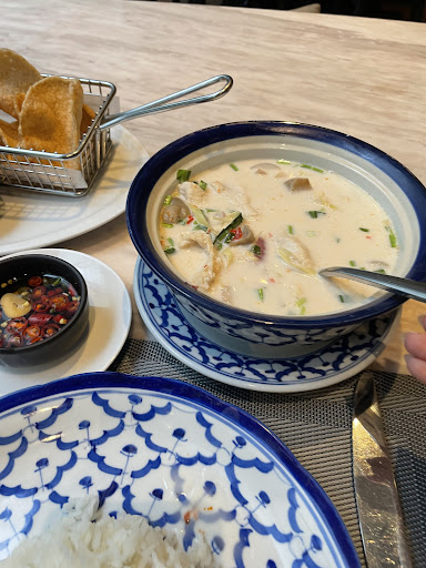 I ordered Tom Kha Kai and it was the perfect rainy evening dish! Not too thick and not too soupy. A little spicy which is perfect because it’s thai food. They served me complimentary crackers with chili for dipping while I waited, and that was a nice starter for a hungry asian customer😄