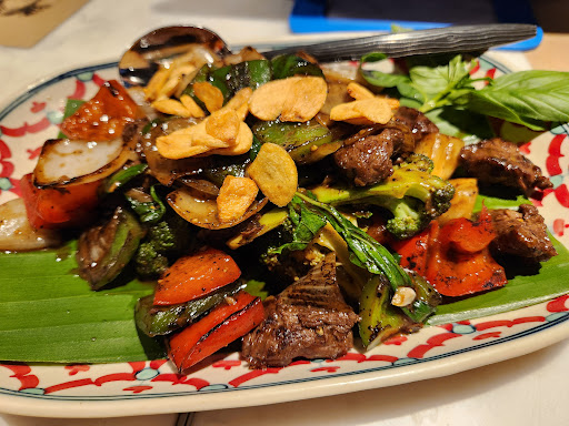 MAY 2023: We absolutely love this place!! We were in Bangkok for about 5 weeks and discovered Lily Fu’s at about the 2nd week. It is an Asian restaurant in the Mercure Hotel. We just happened to go in for lunch one day and enjoyed it so much that we must have gone there at least 10 times. The food is yummy! We had recently spent a week in Chiang Mai and fell in love with khao soi (northern Thai curry dish) that you don’t see in many Thai restaurants in the south so we ordered that along with some pork pan fried dumplings. Both were incredibly delicious! Every single time we went there we ordered those same 2 items because we loved them so much! The khao soi is a little spicy which we love but if you don’t like spicy just let them know. We went here for our final meal in Bangkok and on that day we were craving beef so we also got the basil fried rice with beef and the braised beef with curry and roti (I wish I could remember the exact dish names.). Both were very good but the basil fried rice with beef was especially good. Along with such incredible food, the staff is exceptional. Obviously with our repeat visits, we got to know a few of them pretty well but from our first visit they were very friendly and delivered excellent customer service. Phaew and Hong were particularly great. I actually teared up when we hugged them good-bye. The cocktails and the restaurant decor was also very nice. We will miss this restaurant for the food and the staff and are already looking forward to when we can return again!...