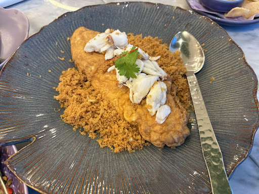We ordered a few dishes, but personally, I felt the flavors weren’t as good as before. Only the salt and pepper squid stood out as tasty and flavorful. The tom yum soup with coconut milk was far too salty, and the crab omelet was overcooked and too dry.