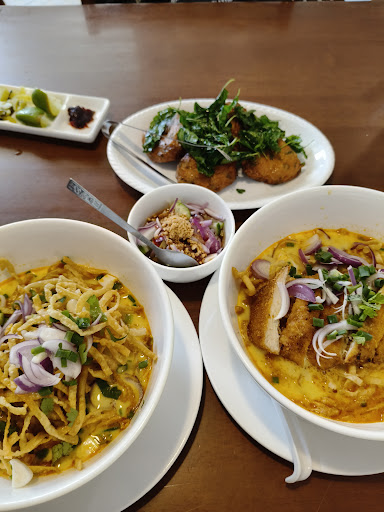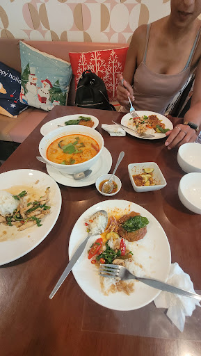 Was in the Sukhumvit area and decided to drop by for lunch based on Marion's yt channel recommendation (Masterchef Australia). Ordered a chicken basil rice with a tom yum goong. Both were excellent preparations, light and flavorful. The major shocker was the fish cakes garnished with crispy lime leaves and served with a cucumber-fish sauce based dressing, which was nothing short of food-nirvana. Saw a couple of local residents dining on the Thursday afternoon we went. My friend who's into baked goods tried a Swiss Roll from the bakery section and exclaimed 'it's so soft, and so lightly sweetened!' (Which is peak compliments for desserts when it comes to Asians!) Our Server Uncle was really helpful and sweet, assisting with the menu and our order. We racked up a bill close to 600B which is quite affordable for 2! My friend even packed a boxful of desserts for her onward journey back to Canada! Such a wonderful dining experience!...