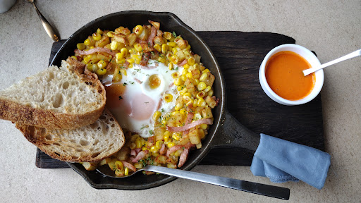 Read moreWhile I can only review the one dish I tried, I'm very impressed. Authentic sourdough bread, high-end coffee, a rustic but stylish interior, and a fantastic ambience (read as Music Tasteful and Not Too Loud, room temp neither stifling nor oppressively cold) all lend themselves to a pleasant experience.