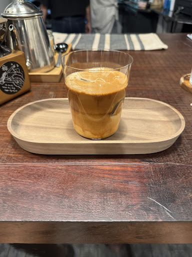 Read moreNice place and they seem to care about coffee but very overpriced. I had a small flat white (120-150 depending on what beans you use). It was unfortunately barely warm even though served in a double walled glass cup. The flavor was also quite weak. I have the Brazil beans (+10) which are mild but I did not expect so little flavor. I had hoped for a lot more for 130 in both flavor, serving temperature and size.