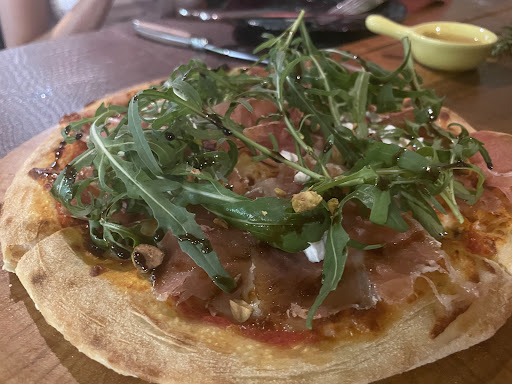 The mains we chose were steak and a pizza. The menu states pizza of the day but we showed a picture of the pizza we preferred from google (ham topped with arugula) and they had no problems accommodating. The pizza was great and the steak and fries were delicious. The steak was nicely marinated and seasoned. It was accompanied by a pepper sauce but not necessarily needed as it already had a nice flavor.