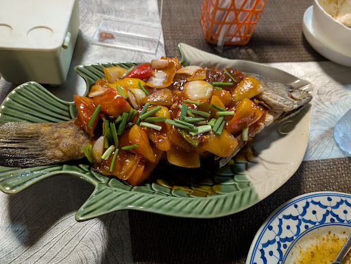 We came to the restaurant a bit late almost their closing time, but we were still treated with superb service. Authentic Thai food, especially the deep fried sea bass in curry, it was amazingly delicious. I think we ordered a bit too much for 2 people. We didn’t know the portions were big, so we ordered 3 dishes and mango with sticky rice. Price was reasonable. Service was excellent. They treat you like family, I never seen any restaurant provide such great customer service. If you’re dining outside at night time, make sure you wear long sleeve or mosquito repeller tho. If not, they have 😊. Thanks for the great dining experience in Thailand. Will come back and try other dishes when we are in...