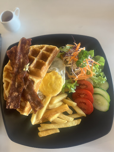 Read moreProbably one of the best cheap foods I’ve had in Bangkok! Staff (three guys) is very very friendly, attentive, speaks English and they provide super quick service. I’ve tried the waffle sandwich with egg and bacon (160 baht) and it was delicious, went back for lunch and had spaghetti carbonara (165 baht) which was very tasty and got vegetable rice (110 baht), spring rolls (100 baht) and fruits (65 baht) for take out, they packed it up really nicely for me. I also tried the strawberry smoothy (75 baht) which was the best one I’ve ever had! Everything was freshly made and restaurant is very clean! All of this came to about 600-700 baht - so cheap and delicious. Highly recommended...