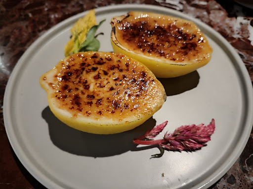 Dessert came with a surprise. I ordered the Lemon CrÃĻme BrÃŧlÃĐe, as it the recommend menu, not realizing it would be served inside an actual lemon! Very creative presentation, though a little too sour for my personal taste.