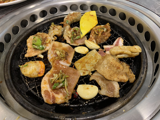 Lunch will have a menu to order pork, beef and seafood. In the dish will be served with kimchi, soup, vegetable salad, sesame oil and rice, sprinkled with plum powder In the meat dish, there will be a sauce poured in the recipe of the shop, sweet (dip instead of sauce). There are pumpkins, garlic and scallop, and slice of lemon to eat with grilled meat, delicious, quite good. Delicious.