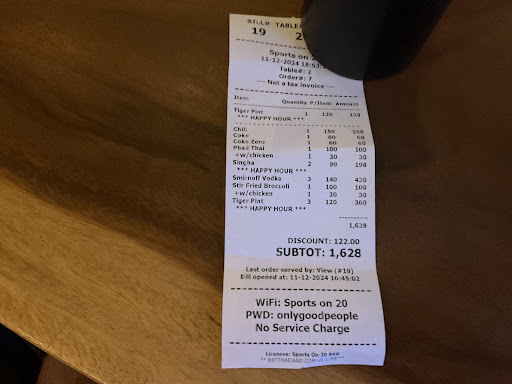 Read moreI stumbled upon Sports on 20 when I met a random German guy who said he’d show me an American sports bar. Honestly, my expectations weren’t high — I mean, we’re in Thailand — but I was pleasantly surprised. This place is the real deal: big-screen TVs with live sports, a great pool table, tasty food, and ice-cold beer.