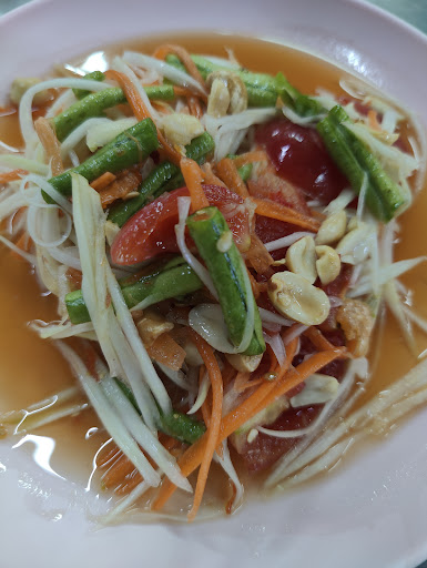 A friend mentioned this restaurant exists forever. That old-school style shows its confidence in cooking and the wisdom of running a business for decades. We ordered a few signature dishes, famous papaya salad, fried marinated pork, stir-fried morning glory, and tom yum gong. The Papaya salad is fresh and tasty, and the fried marinated pork is my favorite. But I don't like the Tom Yum soup cooked here, as it tastes boring.
