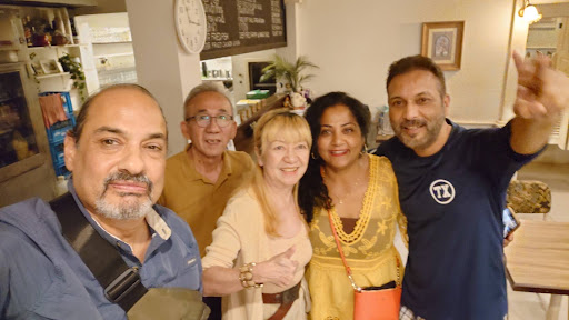 We weren’t ready to Home and I spotted this restaurant on the corner and it looked dark, but there was one person sitting inside there name Frederic, a customer whom we started speaking to later.