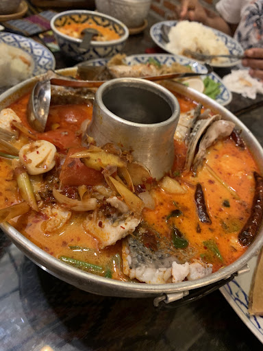 The place welcomes a steady flow of both small and large groups. Open until late as it also serves as a semi-bar. The menu offers a wide variety of traditional Thai dishes—fried, spicy salads, stir-fries, soups, curries—and even Isan specialties 🌶️. Options include prawns, shellfish , crab , fish , pork, and chicken.