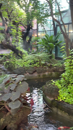 I visited this place when it was hot...and I do mean hot (March 30 2023). The jungle theme with the waterfalls, fish and thick tropical foliage complete with automatic misters to add that "deep jungle" feel was totally a feast for the eyes and really added to the cool feeling of the place.