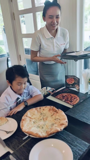 Gracious hostess awaits our visit ! 50 % off pizzas before 5pm ( 17:00 ) !!! Unexpected yet great discount, 2 two scoop ice creams for the kids = yummy factor 😋, comfortable interior space with attractive art, and other objects of decor. Our pizza was wonderful 👏, Vacca treats people right ✅/ back again update ; they are open until 9 :30pm ..came by on my way to the airport and had Tiramisu and ice cream ! Love the staff and great atmosphere 👌//// Update ; Aug 2024 & thoroughly enjoyed our four cheese pizza / mozzarella, fontina, bleu & parmesan. The base was well suited for the cheeses w/ crispy edges and a light dry finish. Always enjoy Vacca, the are Michelin award recipients and they earn their prestigious awards 🏆!!! Update ; Songkran 2025 ; Fabuloso ! Australian 200 gr. ribeye so tasty & cooked med rare to perfection. Love Vaccas crinkle cut fries, garlic toast - fresh, tasty, crispy, abundant portions. I had a fine caesar w/ out the chicken and it was very good. Yes , dessert , I thought you would never ask 😉, biscoff & dbl. choc. gelatos...rich, creamy, flavor packed - two scoops 1/1 finish a Grand meal. The light jazz allows a slower more enjoyable pace to dine, converse, and take in the amazing decor, art, wine collection/ offerings & more. Roma tomato colored ceilings w/ subdued spot lighting quite romantic in nature. One of Khon Kaens very best , please experience for yourselves, no risk , only a rewarding day or evening ! As always on a final note the staff is gracious , efficient, clean , expeditious and here year after year...