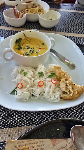 Strongly recommend the local dishes over the western ones (the burger I ordered is quite miserable). However the spicy fried fish cubes are delicious, others like green curry, rice vermicelli with curry are...